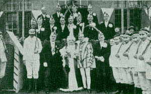 Prinz mit Elferrat und Stadtsoldaten vor dem Rathaus